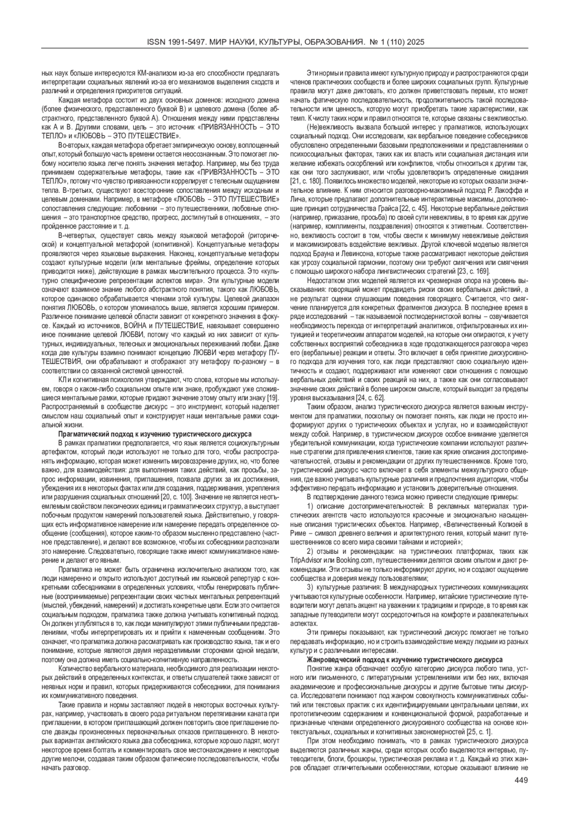 5. Тарнаева Л.П., Дацюк В.В. Туристический дискурс: лингвопрагматические характеристики. Вестник СпБ ГЭ. Серия 9. 2013; № 3: 229-23. EDN: RLYJCB