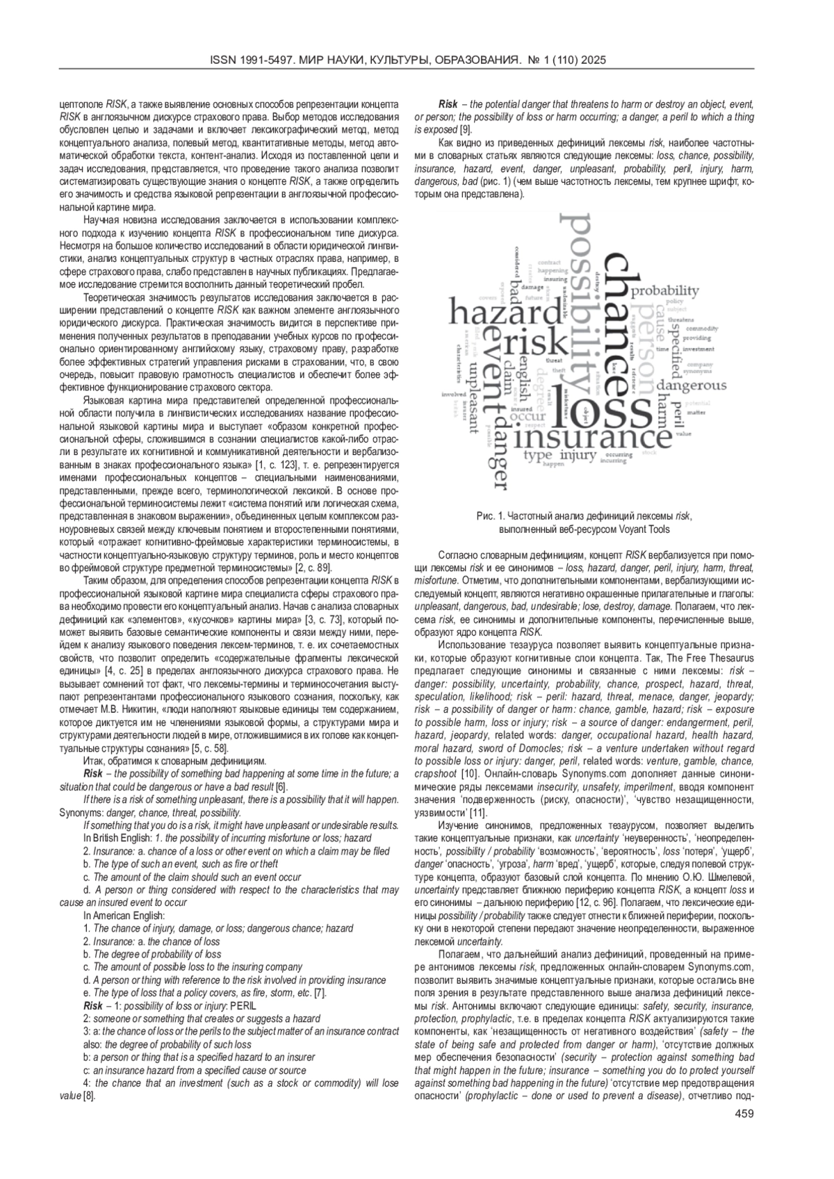 Ключевые фразы: риск, страховое право, профессиональная картина мира, профессиональное языковое сознание, концепт, концептуальное поле, КОНЦЕПТОСФЕРА, юридический дискурс, ЮРИДИЧЕСКАЯ ТЕРМИНОЛОГИЯ, английский язык