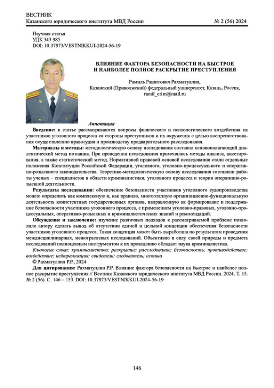 7. Мишин А.В. Криминалистическое обеспечение безопасности участников уголовного судопроизводства: монография. Москва: Юрлитинформ, 2023. 168 с. EDN: IKMABS