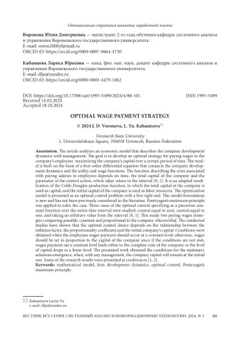 2. Воронова Ю. Д. Оптимальная политика выплаты заработной платы / Ю. Д. Воронова, Л. Ю. Кабанцова // Техника и безопасность объектов уголовно-исполнительной системы: сб. тр. Междунар. Науч.-практической конф. (Воронеж, 17-18 мая 2023г.). - Воронеж, 2023. - С. 41-48. EDN: DFZEBI