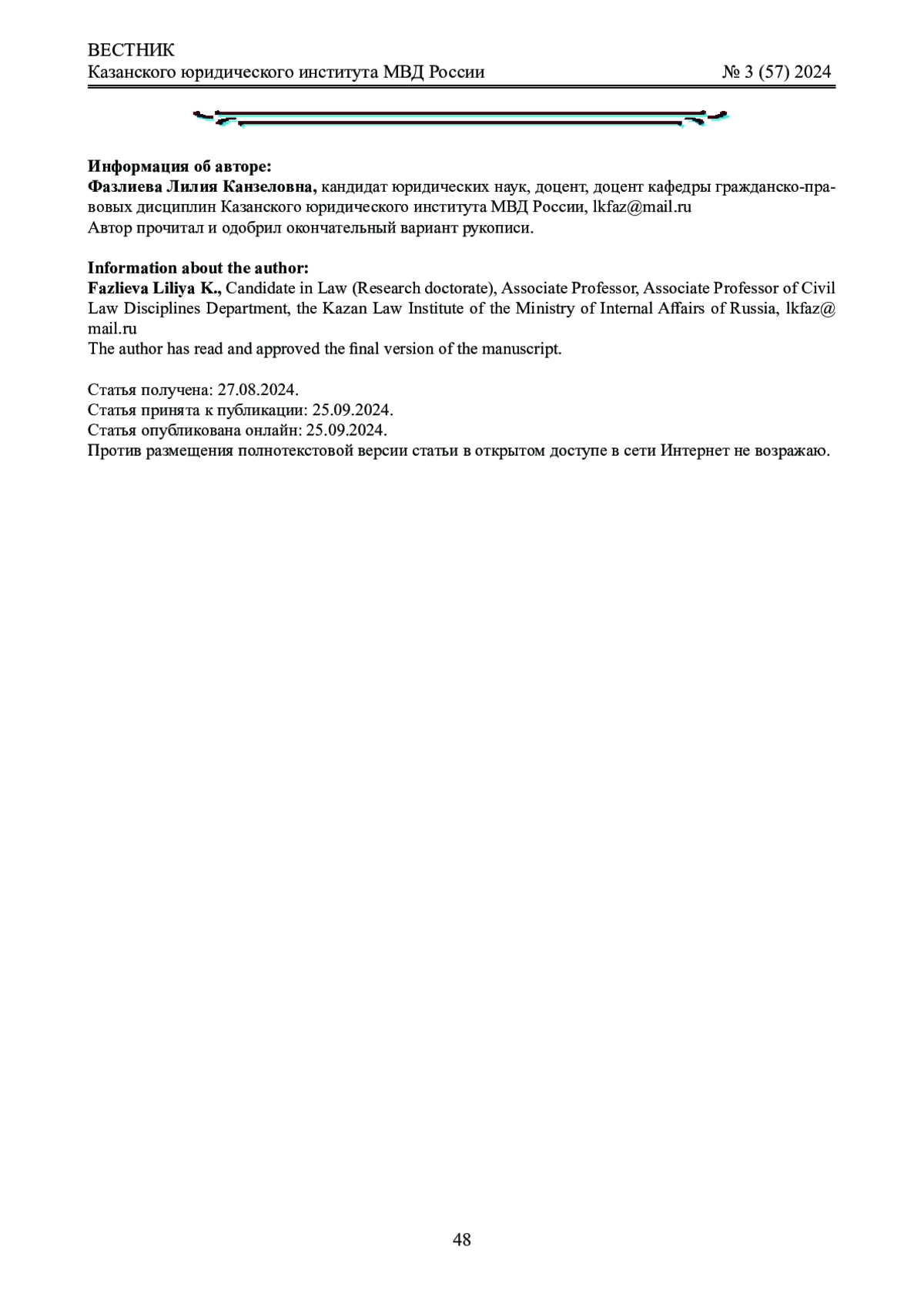 Журнал: ВЕСТНИК КАЗАНСКОГО ЮРИДИЧЕСКОГО ИНСТИТУТА МВД РОССИИ