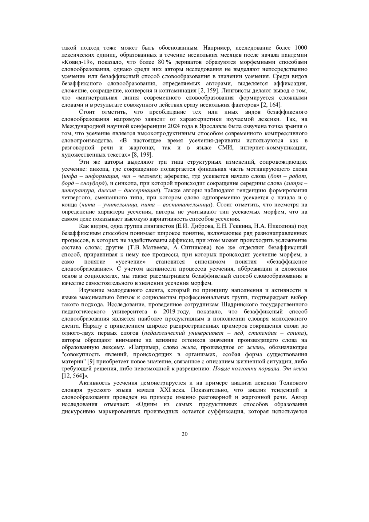 8. Николина Н.А. Функционирование усечений-дериватов в современной русской речи // Семантика и функционирование языковых единиц в разных типах речи. Сборник статей Международной научной конференции. Ярославль, 2024. С. 198-205.