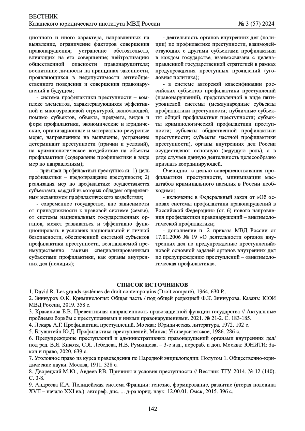 12. Кузьминых А.С. Общие проблемы предупреждения преступности // Право и государство: теория и практика. 2023. № 1 (217). С. 190-191.