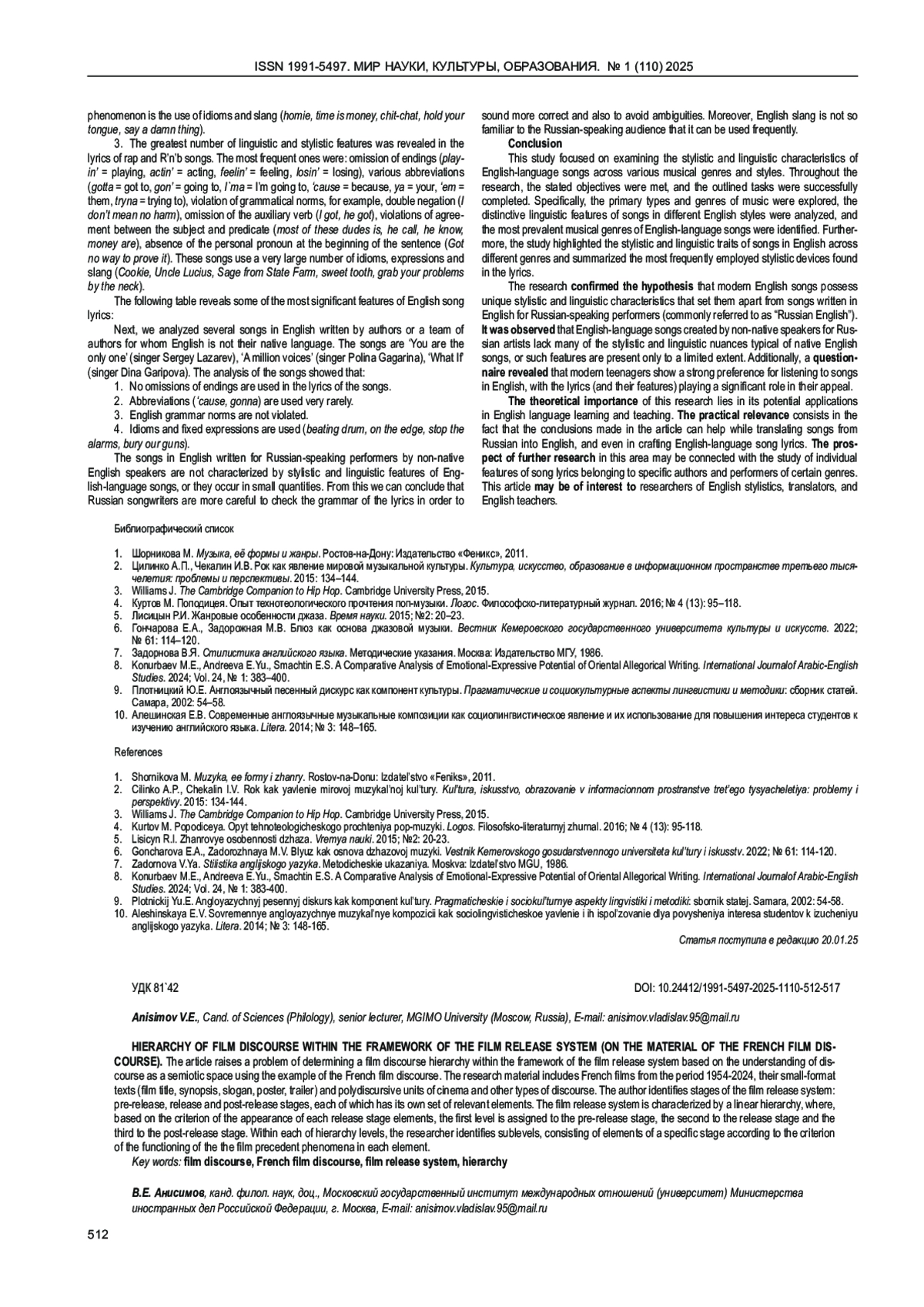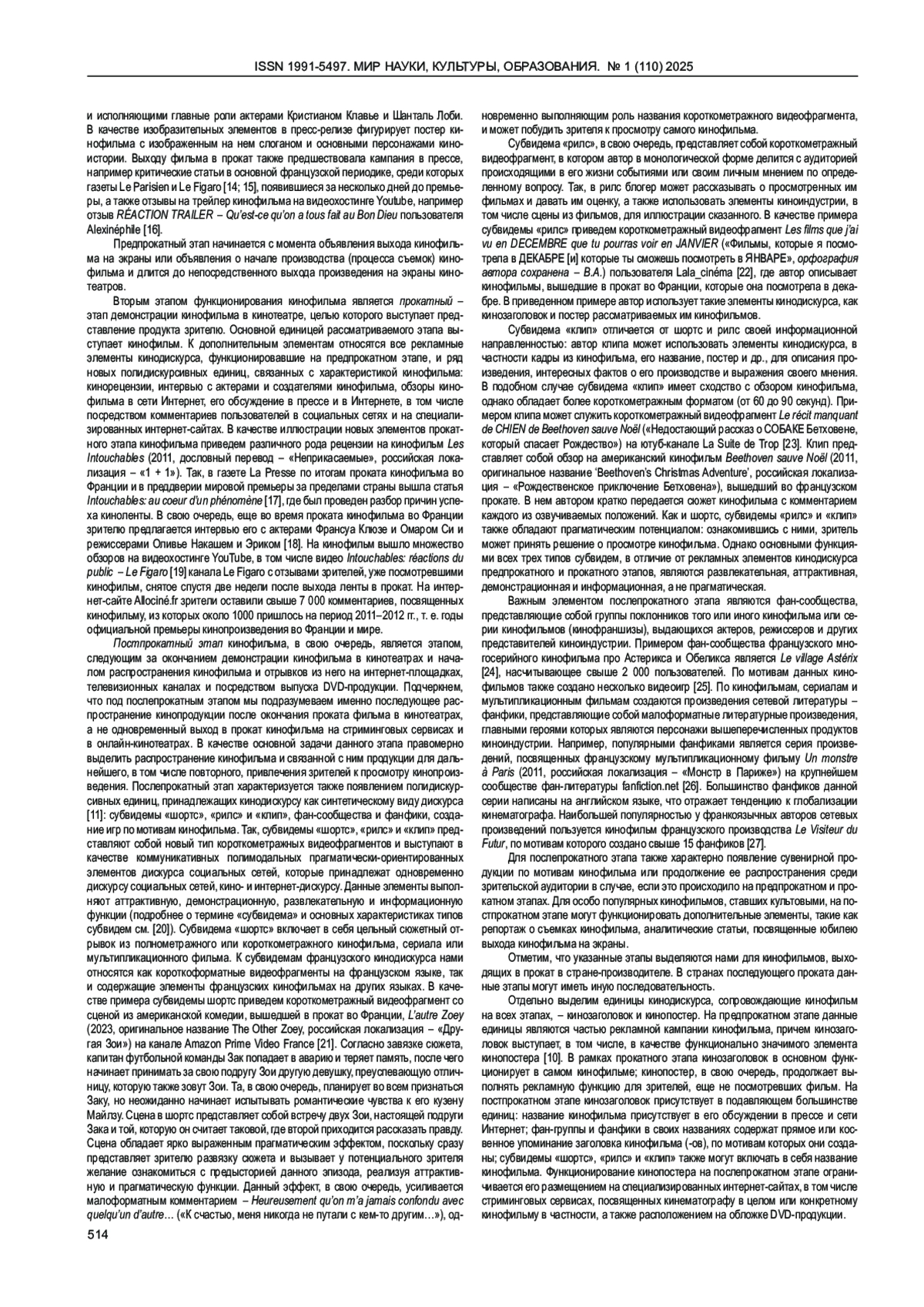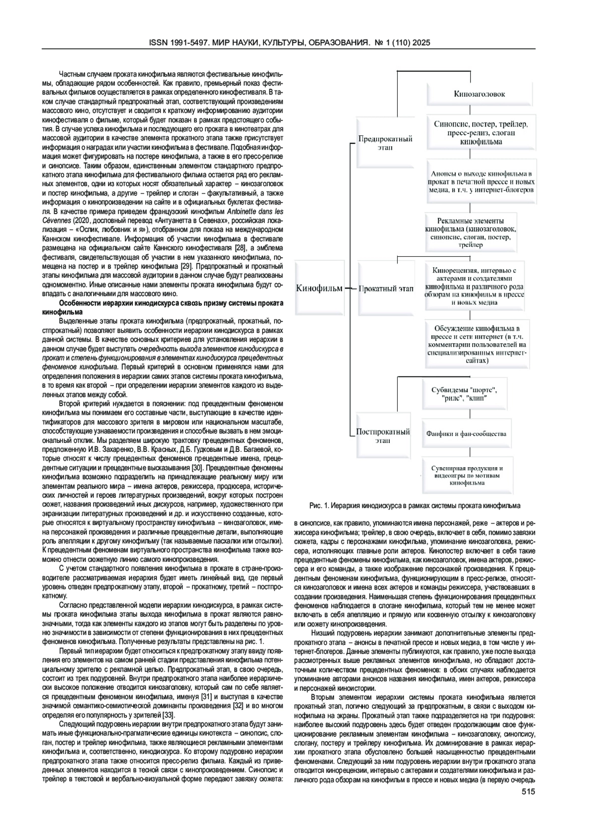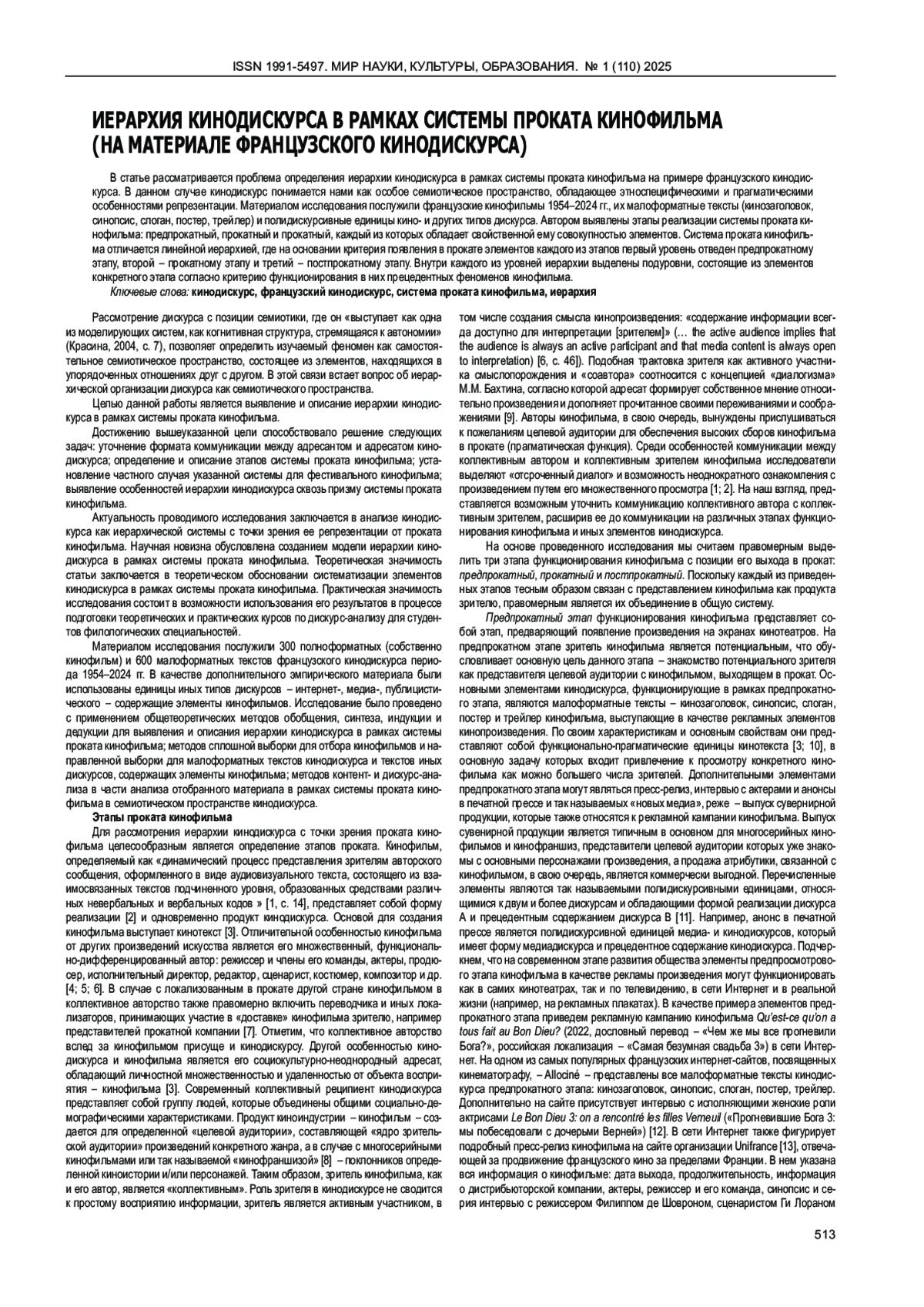 Статья: ИЕРАРХИЯ КИНОДИСКУРСА В РАМКАХ СИСТЕМЫ ПРОКАТА КИНОФИЛЬМА (НА МАТЕРИАЛЕ ФРАНЦУЗСКОГО КИНОДИСКУРСА) (2025)