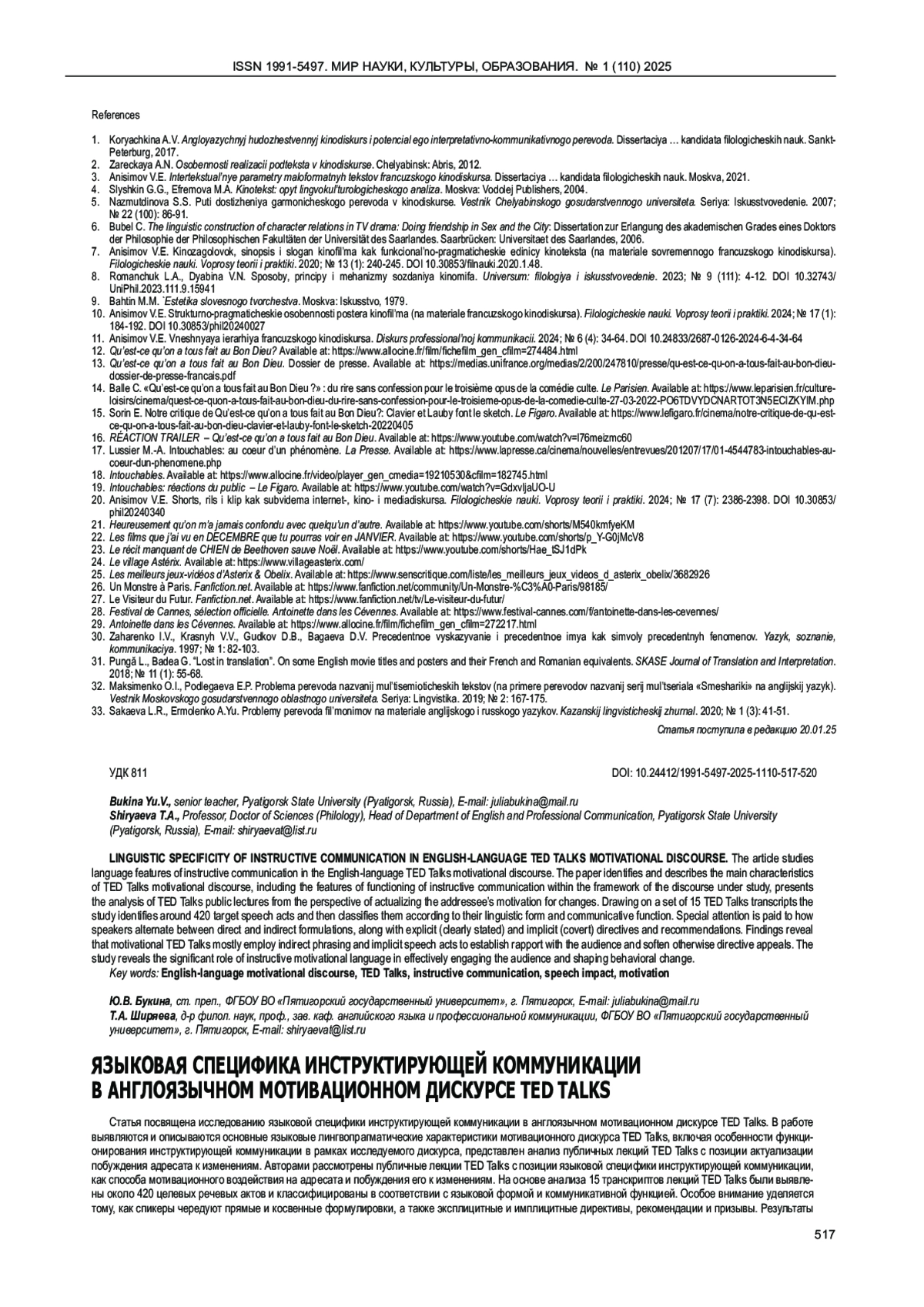 Журнал: МИР НАУКИ, КУЛЬТУРЫ, ОБРАЗОВАНИЯ