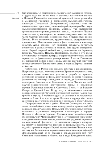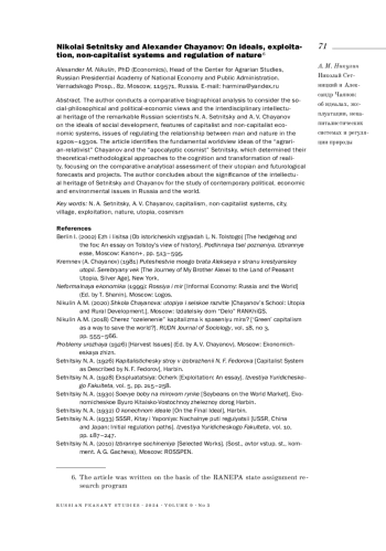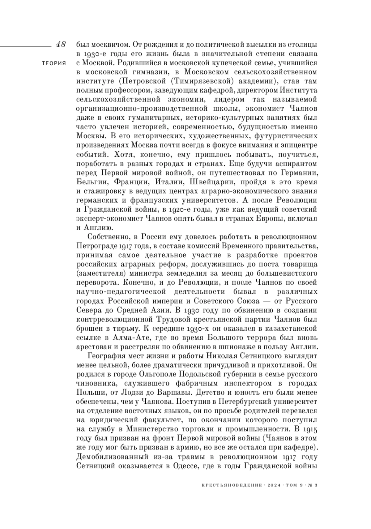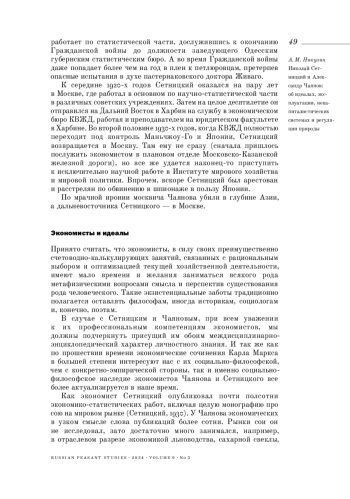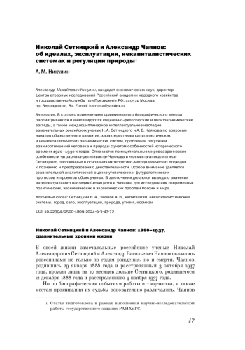 НИКУЛИН А. М. НИКОЛАЙ СЕТНИЦКИЙ И АЛЕКСАНДР ЧАЯНОВ: ОБ ИДЕАЛАХ, ЭКСПЛУАТАЦИИ, НЕКАПИТАЛИСТИЧЕСКИХ СИСТЕМАХ И РЕГУЛЯЦИИ ПРИРОДЫ // КРЕСТЬЯНОВЕДЕНИЕ. 2024. Т. 9 № 3