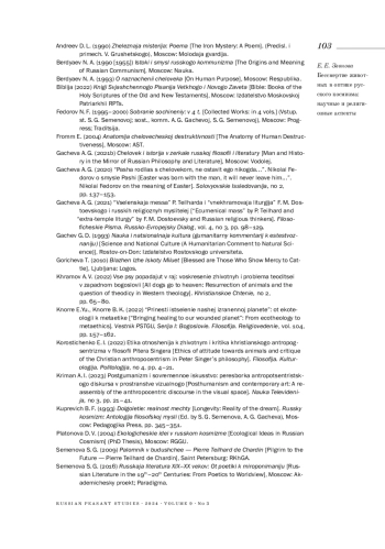 7. Гачева А. Г. (2021а). “Вселенская месса” П. Тейяра и “внехрамовая литургия” Ф. М. Достоевского и русских религиозных мыслителей // Философические письма. Русско-европейский диалог. Т. 4. № 3. С. 98-129. EDN: NVVVMS