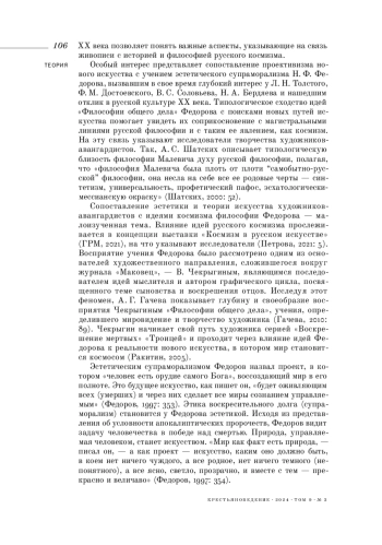 Статья: КРЕСТЬЯНСКИЙ КОСМОС РУССКОГО АВАНГАРДА И ЭСТЕТИЧЕСКИЙ СУПРАМОРАЛИЗМ Н. Ф. ФЕДОРОВА (2024)