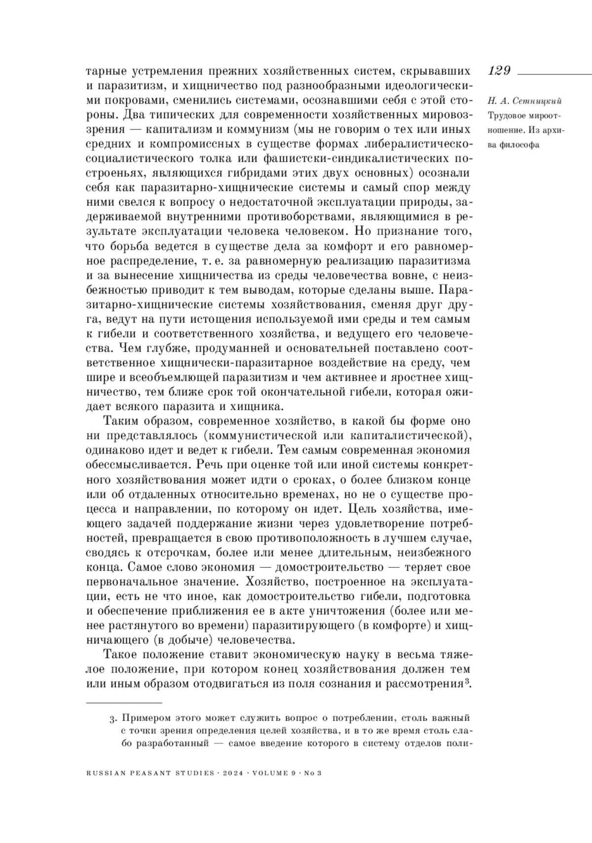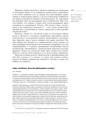 СЕТНИЦКИЙ Н. А. ТРУДОВОЕ МИРООТНОШЕНИЕ. ИЗ АРХИВА ФИЛОСОФА // КРЕСТЬЯНОВЕДЕНИЕ. 2024. Т. 9 № 3