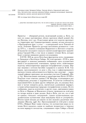 Статья: ДЕРЕВНИ "КЕТСКОГО КРЯЖА" XVII-XVIII ВЕКОВ: ПЕРСПЕКТИВЫ АРХЕОЛОГИЧЕСКОГО И ИСТОРИЧЕСКОГО ИЗУЧЕНИЯ (2024)