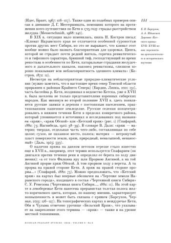 БАРСУКОВ Е. В., ИДИМЕШЕВ А. А. ДЕРЕВНИ "КЕТСКОГО КРЯЖА" XVII-XVIII ВЕКОВ: ПЕРСПЕКТИВЫ АРХЕОЛОГИЧЕСКОГО И ИСТОРИЧЕСКОГО ИЗУЧЕНИЯ // КРЕСТЬЯНОВЕДЕНИЕ. 2024. Т. 9 № 3