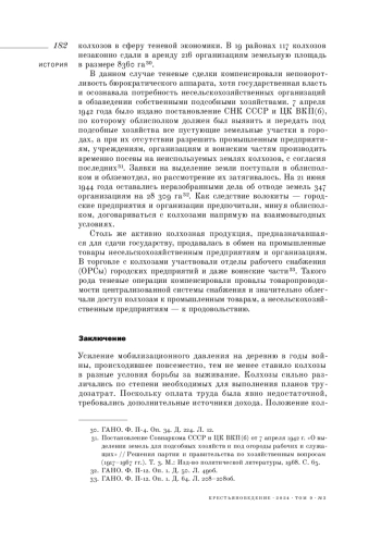 2. Мерль Ш. (2017). Формы местного управления в советской деревне накануне Великой Отечественной войны: критерии эффективности и коммуникативные практики предотвращения крестьянских бунтов // Крестьяноведение. Т. 2. № 2. С. 53-76. EDN: ZCINFB