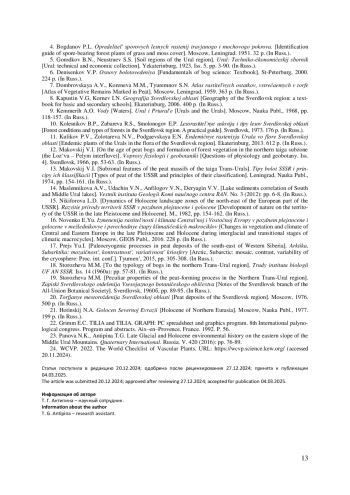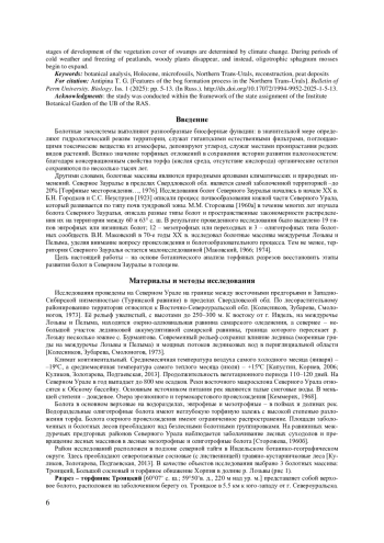 Ключевые фразы: ботанический анализ, голоцен, микрофоссилии, СЕВЕРНОЕ ЗАУРАЛЬЕ, реконструкция, торфяные отложения