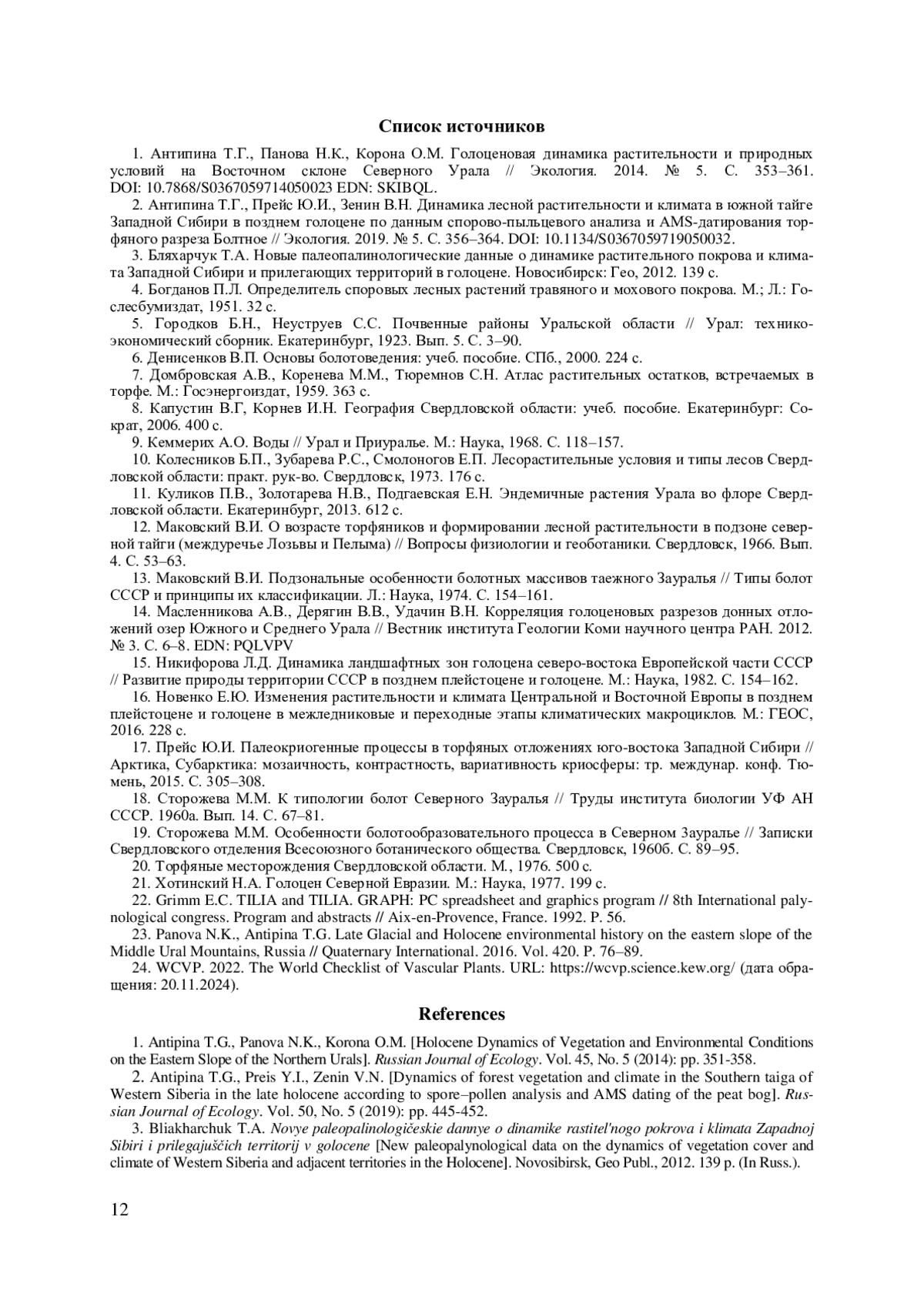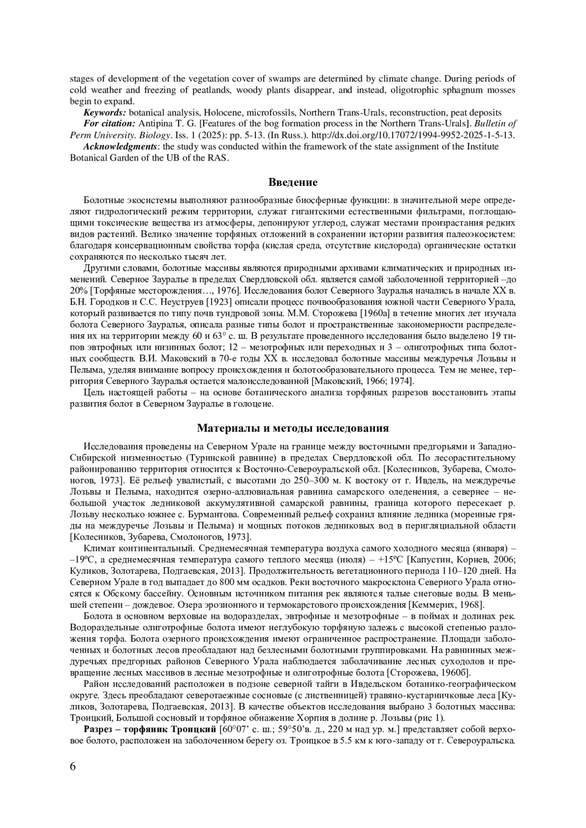 АНТИПИНА Т. Г. ОСОБЕННОСТИ БОЛОТООБРАЗОВАТЕЛЬНОГО ПРОЦЕССА В СЕВЕРНОМ ЗАУРАЛЬЕ // ВЕСТНИК ПЕРМСКОГО УНИВЕРСИТЕТА. СЕРИЯ: БИОЛОГИЯ. 2025. № 1