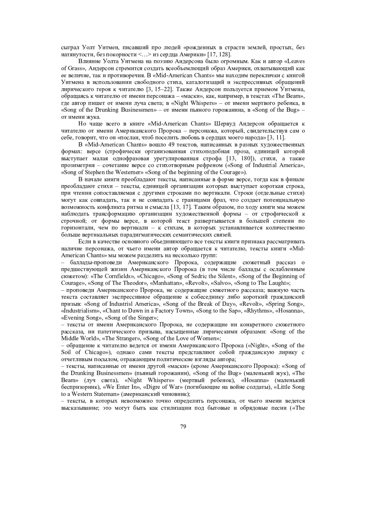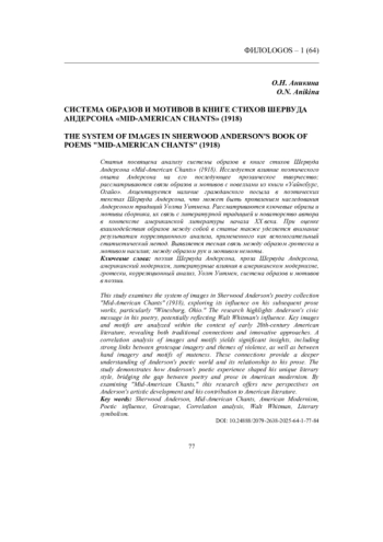 АНИКИНА О. Н. СИСТЕМА ОБРАЗОВ И МОТИВОВ В КНИГЕ СТИХОВ ШЕРВУДА АНДЕРСОНА "MIDAMERICAN CHANTS" (1918) // ФИЛОLOGOS. 2025. № 1 (64)