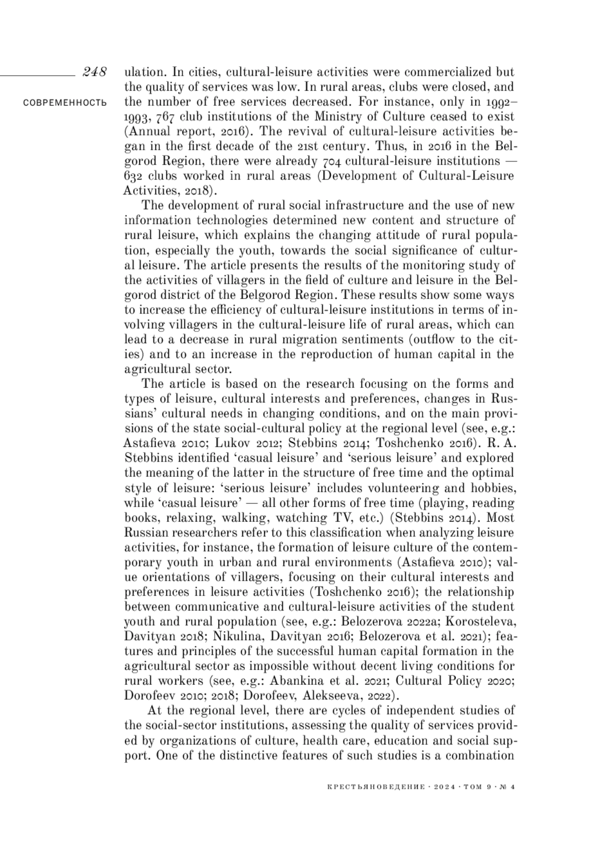 25. Trotsuk I. V. (2023) Rural human capital in the conceptual optics: Continuum and/or postism? RUDN Journal of Sociology, vol. 23, no 2, pp. 338-354. (In Russian). EDN: RWFWAF