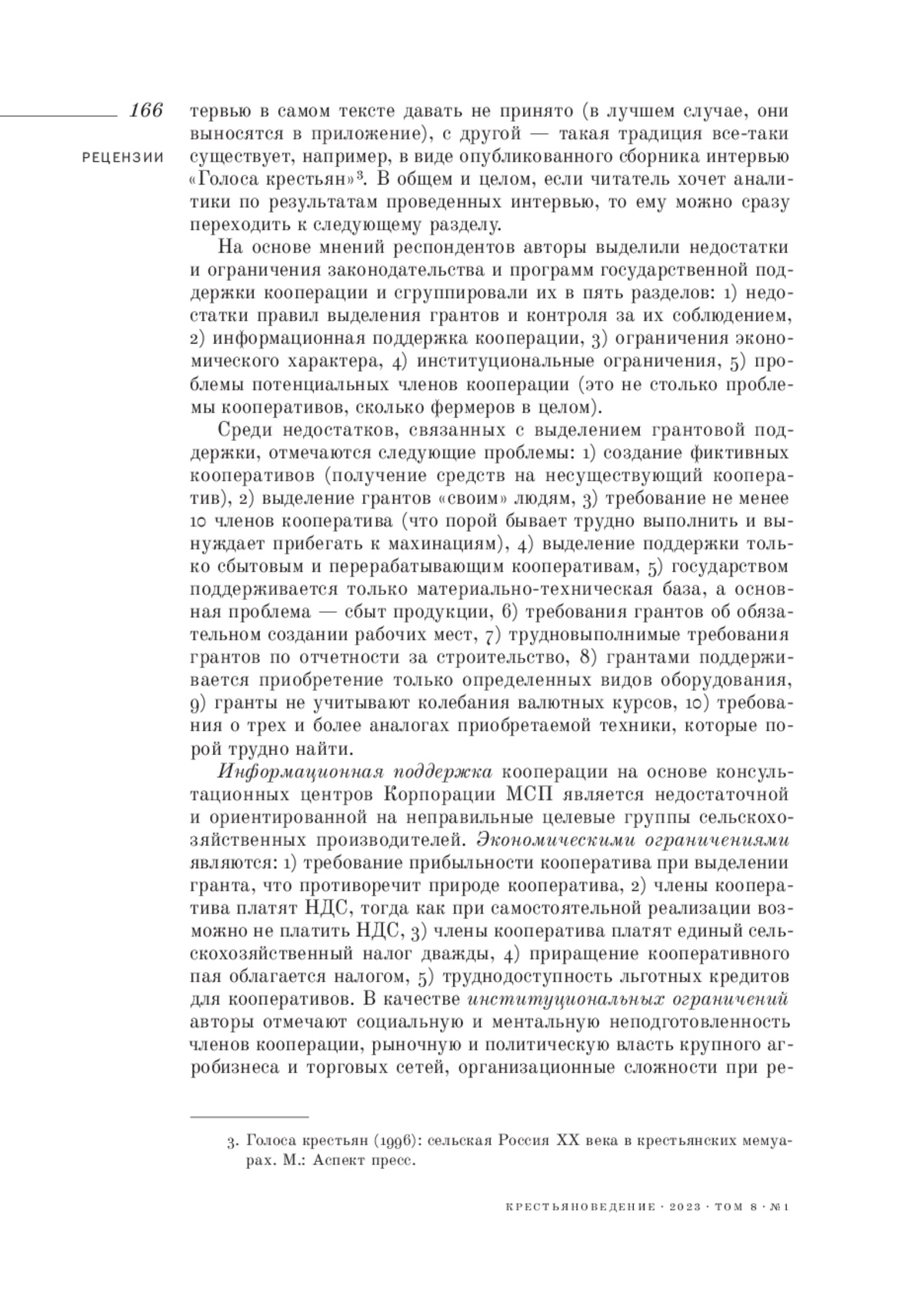 Рецензия на книгу: Антонова М. П., Гатаулина Е. А., Потапова А. А., Скоморохов С. Н. (2022). Почему не развивается сельскохозяйственная потребительская кооперация в России? Мнения участников процесса сельскохозяйственной кооперации в вопросах и ответах. М.: Издательский дом «Дело» РАНХиГС. - 248 с. ISBN 978-5-85006-415-0