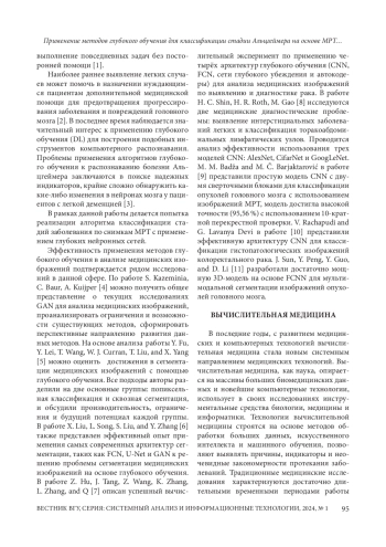 В современной медицине медицинские изображения начинают играть ключевую диагностическую роль, формируя наглядные индикаторы заболевания, помогая на возможно некритической стадии распознать заболевание. На современном этапе развития медицины наиболее часто используемыми типами медицинских изображений являются: МРТ — магнитно-резонансная томография и КТ — компьютерная томография. Сложность и большое количество деталей на медицинских изображениях требует много времени на их анализ. Отсутствие детальности в анализе изображений может давать ошибочные или необъективные результаты. Классические (достаточно давно используемые на практике) алгоритмы машинного обучения, как показывает опыт их применения, решают задачи автоматизированного анализа изображений, но не всегда обеспечивают требуемую точность.