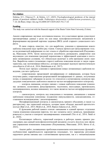 Ключевые фразы: исполнительные функции, внутренняя картина здоровья, вкз, вариабельность кардиоритма, автономная нервная система, анс, ДОШКОЛЬНИКИ