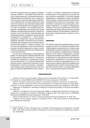9. Шевченко В. Н. Особенности цивилизационного развития России в контексте противостояния с Западом. Феномен русофобии // Вопросы социальной теории. 2022. Т. 14. С. 224-247.
