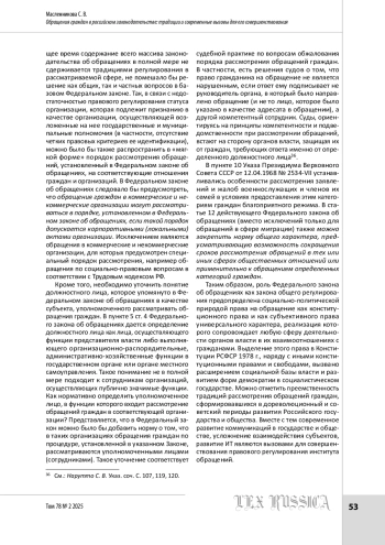 16. Степкин С. П. Проблемы исследования объективности и всесторонности рассмотрения обращений // Конституционное и муниципальное право. 2022. № 11. С. 34-37.