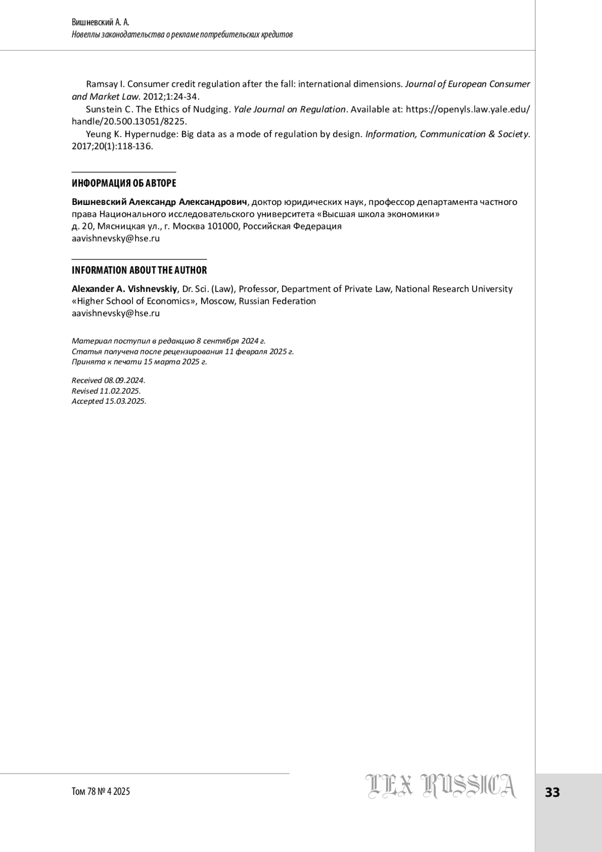 7. Ramsay I. Consumer credit regulation after the fall: international dimensions // Journal of European Consumer and Market Law. 2012. No. 1. P. 24-34.