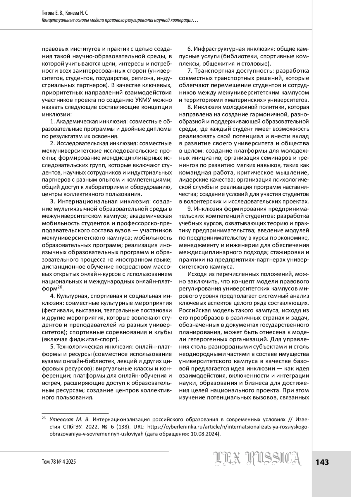 7. Утевская М. В. Интернационализация российского образования в современных условиях // Известия СПбГЭУ. 2022. № 6 (138).