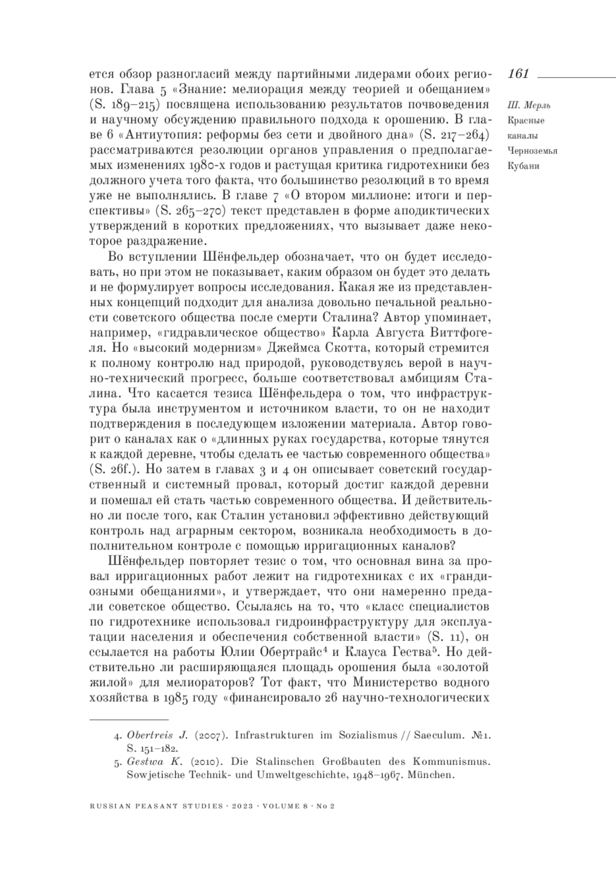 Review of the book: Schönfelder T., Fluss R., Erde S. Der Kuban und der agromeliorative Komplex. Eine sowjetische Umwelt- und Technikgeschichte 1929-1991. (Geschichte der technischen Kultur, Bd. 14), Brill Schöningh: Paderborn, 2022, XI + 324 s.