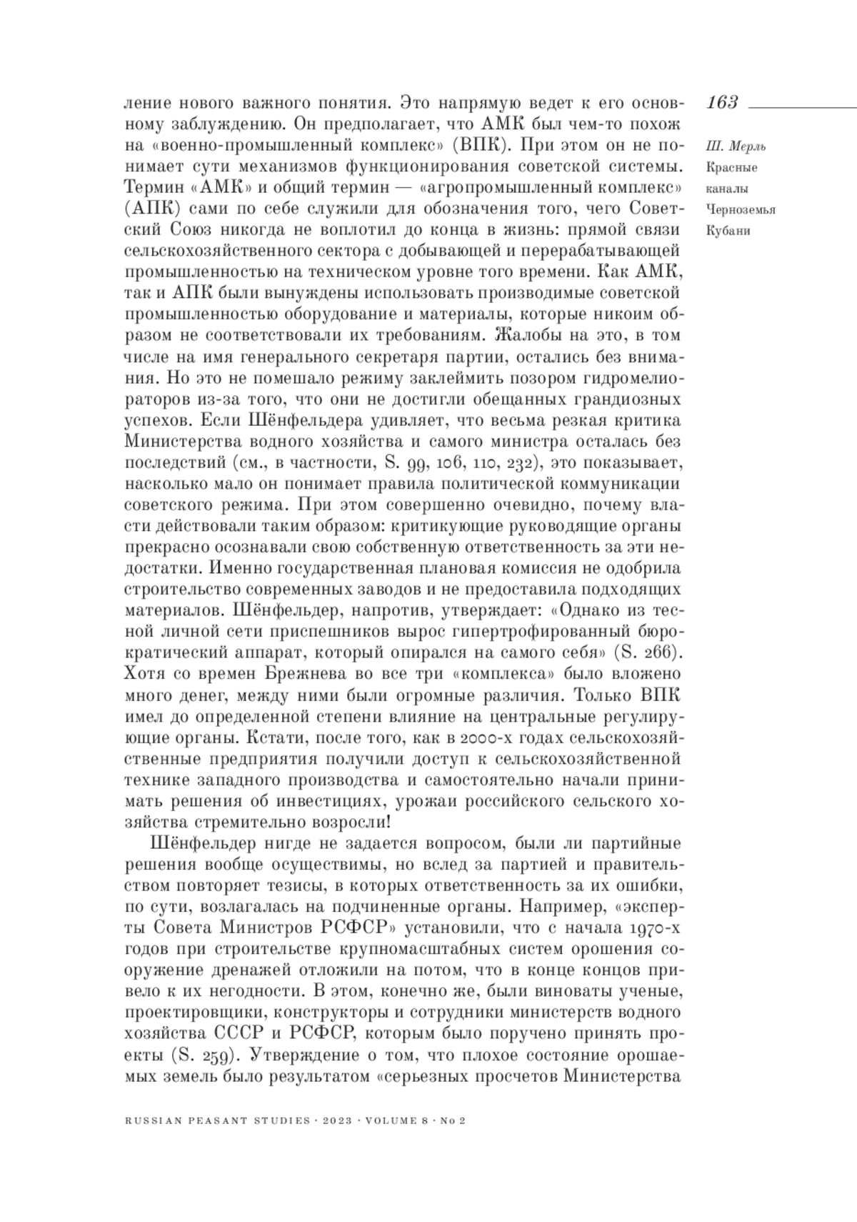 МЕРЛЬ Ш. К. КРАСНЫЕ КАНАЛЫ ЧЕРНОЗЕМЬЯ КУБАНИ // КРЕСТЬЯНОВЕДЕНИЕ. 2023. Т. 8 № 2
