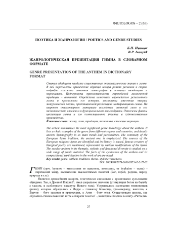 ИВАНЮК Б. П. ЖАНРОЛОГИЧЕСКАЯ ПРЕЗЕНТАЦИЯ ГИМНА В СЛОВАРНОМ ФОРМАТЕ // ФИЛОLOGOS. 2025. № 2 (65)