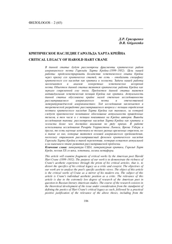 5. Lewis R. The poetry of Hart Crane: A critical study. Princeton, 1967.