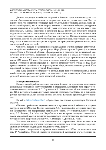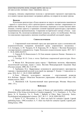 5. Трубицина Н.А. Нарративные возможности архитектурного пространства городов с традиционной русской культурой (на примере Г. Ельца) // Социология города. 2014. № 2. С. 20-32.