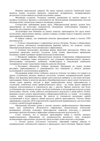 Современная система среднего профессионального образования (СПО) требует применения эффективных методик для формирования у студентов прочных знаний по базовым дисциплинам, включая химию. Химия как наука играет ключевую роль в подготовке специалистов различных технических направлений, так как знание химических процессов и свойств веществ является основой для понимания многих производственных технологий.