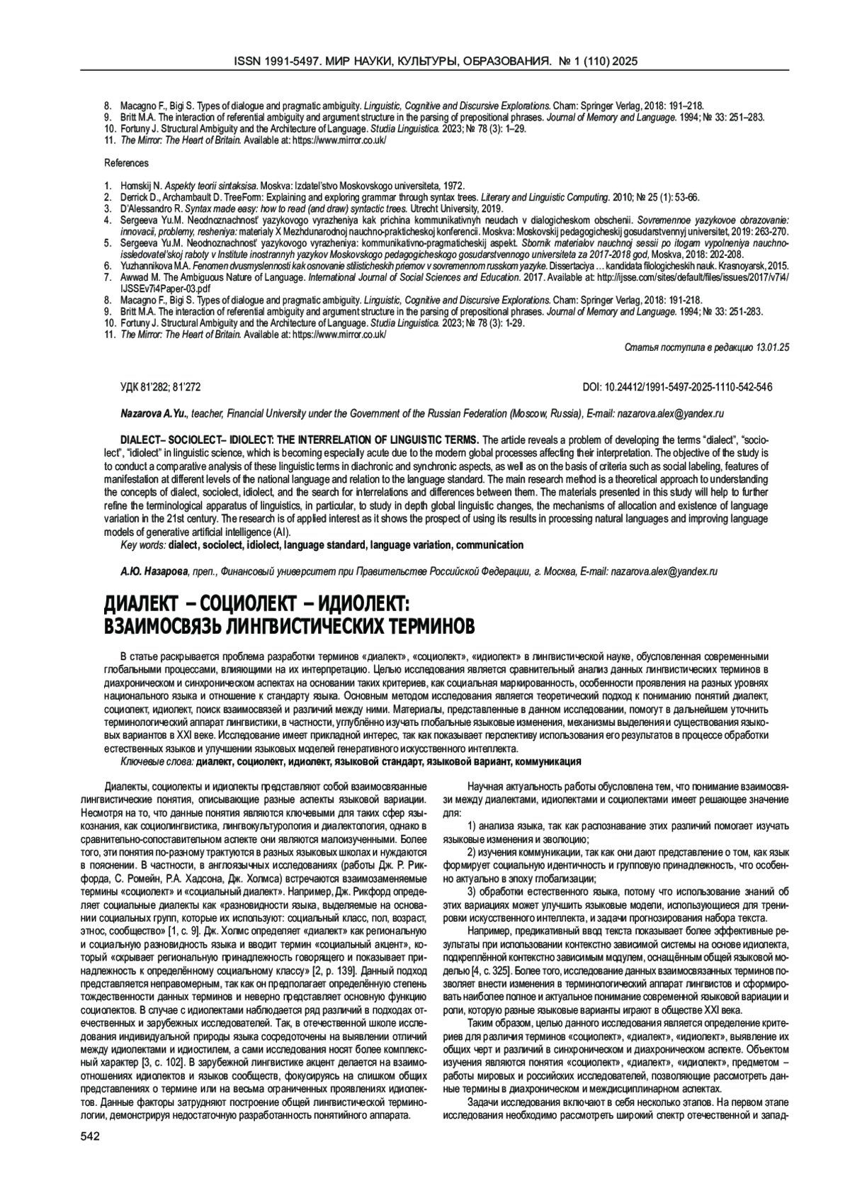 21. Ahmad Sh., Haroon S., Hafsa Gh. Sociolect and the Cognitive Development of Youth. Turkish Online Journal of Qualitative Inquiry (TOJQI). 2022; Vol. 13, № 1, 937-945.