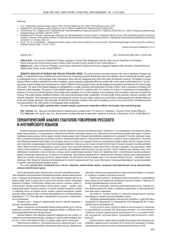 Статья: СЕМАНТИЧЕСКИЙ АНАЛИЗ ГЛАГОЛОВ ГОВОРЕНИЯ РУССКОГО И АНГЛИЙСКОГО ЯЗЫКОВ (2025)