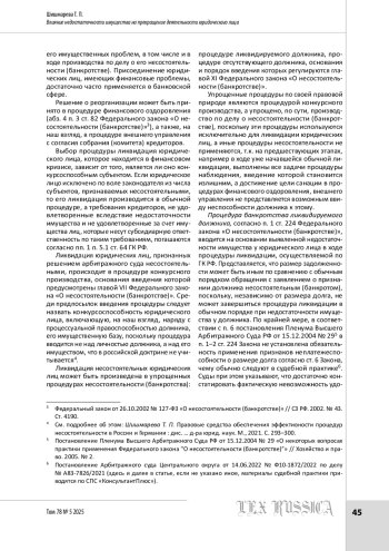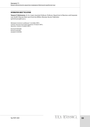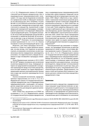 ШИШМАРЕВА Т. П. ВЛИЯНИЕ НЕДОСТАТОЧНОСТИ ИМУЩЕСТВА НА ПРЕКРАЩЕНИЕ ДЕЯТЕЛЬНОСТИ ЮРИДИЧЕСКОГО ЛИЦА // LEX RUSSICA (РУССКИЙ ЗАКОН). 2025. ТОМ 78, № 5