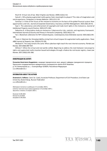 13. Saw C. The Subsistence and Enforcement of Copyright and Trade Mark Rights in the Metaverse // Journal of Intellectual Property Law & Practice. 2023. № 3. P. 371-384.
