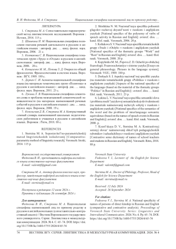 3. Колтакова С. В. Национальная специфика тематических групп “Труд” и “Отдых” в русском и английском языках: автореф. дис.. канд. филол. наук. Воронеж, 2008. 20 с. EDN: NKLJVZ