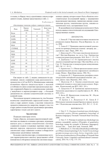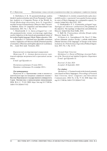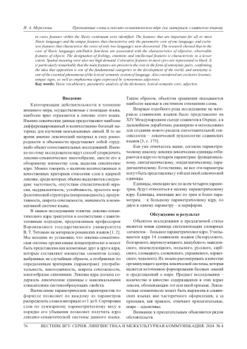 МЕРКУЛОВА И. А. ПРИЗНАКОВЫЕ СЛОВА В ЛЕКСИКО-СЕМАНТИЧЕСКОМ ЯДРЕ (НА МАТЕРИАЛЕ СЛАВЯНСКИХ ЯЗЫКОВ) // ВЕСТНИК ВОРОНЕЖСКОГО ГОСУДАРСТВЕННОГО УНИВЕРСИТЕТА. СЕРИЯ: ЛИНГВИСТИКА И МЕЖКУЛЬТУРНАЯ КОММУНИКАЦИЯ. 2024. № 4