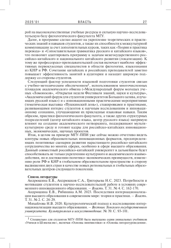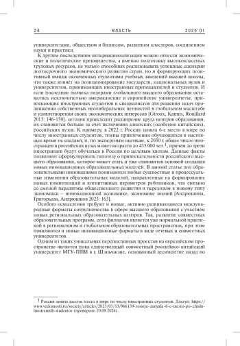 ЧЖОУ С., АНДРЮШИНА Е. В. СОВМЕСТНЫЕ УНИВЕРСИТЕТЫ КАК ИННОВАЦИОННЫЙ ФОРМАТ ИНТЕРНАЦИОНАЛИЗАЦИИ ВЫСШЕГО ОБРАЗОВАНИЯ (НА ПРИМЕРЕ СОВМЕСТНОГО УНИВЕРСИТЕТА МГУ-ППИ В ШЭНЬЧЖЭНЕ) // ВЛАСТЬ. 2025. ТОМ 33 № 1