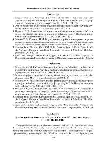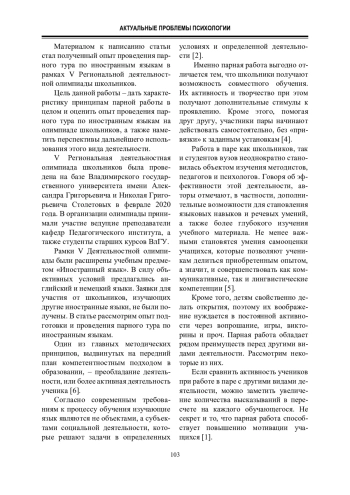 ЛЫСОВА Е. Б. ПАРНЫЙ ТУР ПО ИНОСТРАННЫМ ЯЗЫКАМ НА ДЕЯТЕЛЬНОСТНОЙ ОЛИМПИАДЕ ШКОЛЬНИКОВ // ВЕСТНИК ВЛАДИМИРСКОГО ГОСУДАРСТВЕННОГО УНИВЕРСИТЕТА ИМ. АЛЕКСАНДРА ГРИГОРЬЕВИЧА И НИКОЛАЯ ГРИГОРЬЕВИЧА СТОЛЕТОВЫХ. СЕРИЯ: ПЕДАГОГИЧЕСКИЕ И ПСИХОЛОГИЧЕСКИЕ НАУКИ. 2024. №3