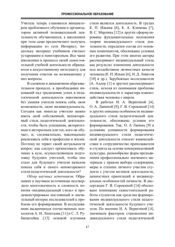 14. Сорокина Г. В. Формирование индивидуального стиля профессиональной деятельности будущего учителя : дис. … канд. пед. наук. Волгоград, 2004. 20 с.