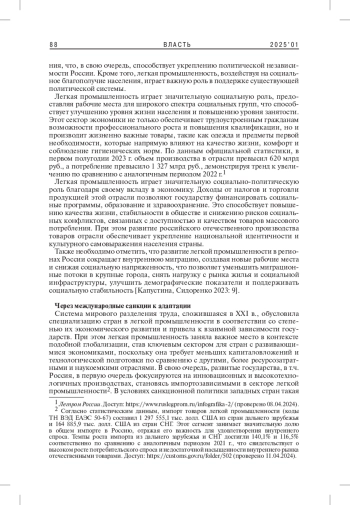 В условиях международных санкций и логистических проблем легкая промышленность России сталкивается с серьезными вызовами, требующими адаптации политических процессов и институтов. Целью данной статьи является исследование значимости легкой промышленности России в современных условиях, определение ее влияния на политические процессы и институциональные преобразования, а также анализ политических стратегий и мер, направленных на поддержку этой отрасли. Особое внимание уделяется взаимодействию легкой промышленности с политическими институтами и ее влиянию на экономическую безопасность и социальную стабильность страны. В статье представлены определение легкой промышленности и классификация предприятий по типу продукции. Автор исследует влияние санкций на производственные процессы, логистические цепочки и политические реакции, рассматривает политические инициативы и программы импортозамещения, направленные на поддержание легкой промышленности и приходит к выводу о значимости легкой промышленности для политической стабильности и экономической безопасности России.