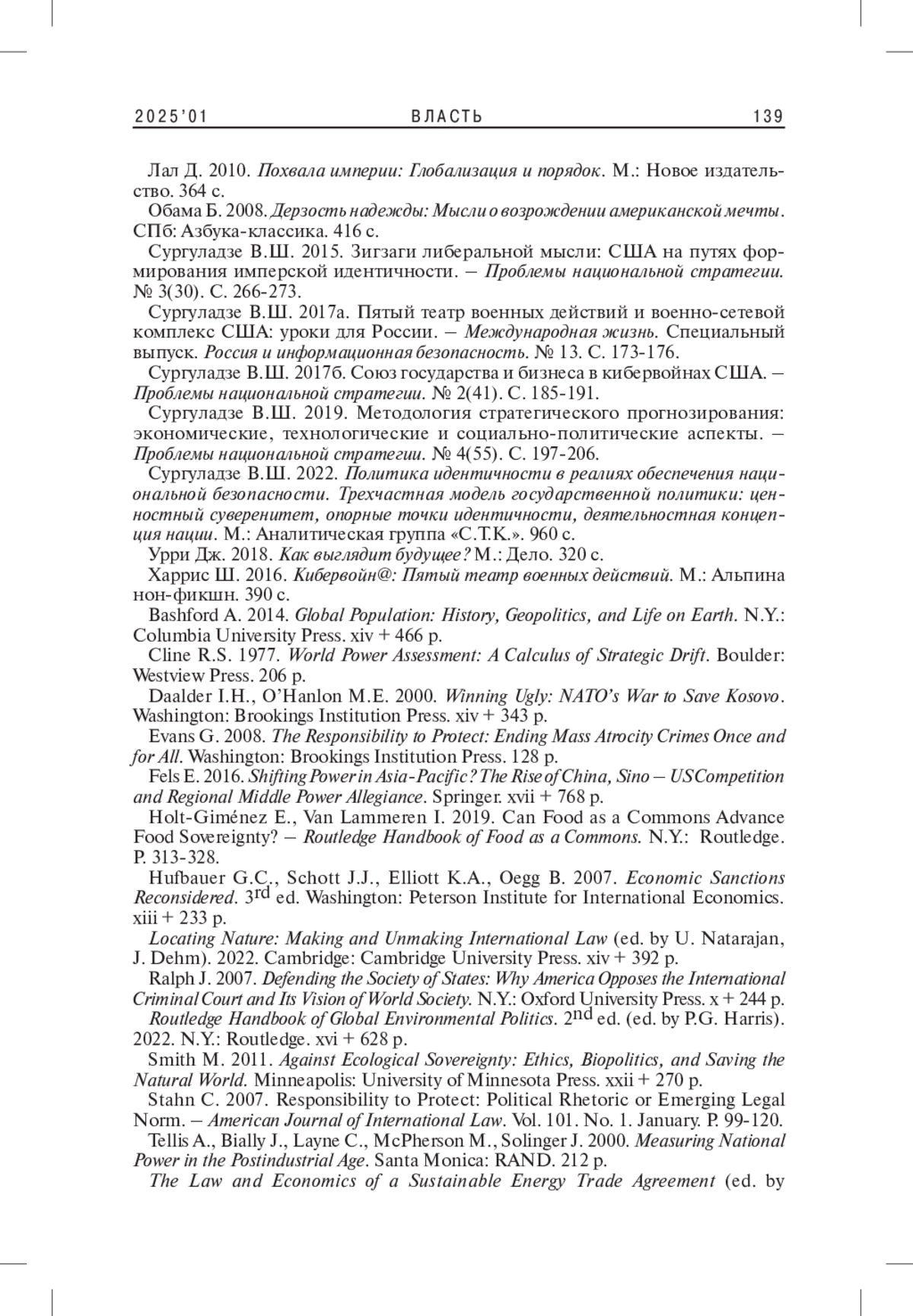10. Сургуладзе В.Ш. 2015. Зигзаги либеральной мысли: США на путях формирования имперской идентичности. - Проблемы национальной стратегии. № 3(30). С. 266-273. EDN: UNEWRN