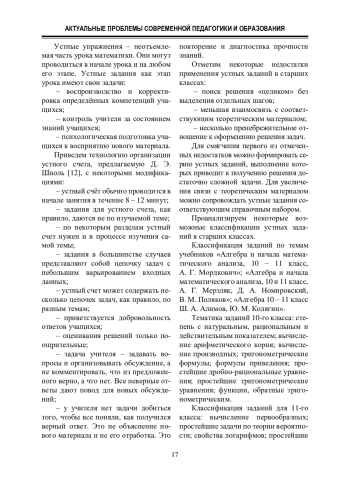 1. Бойко Л. В., Лобанова Е. М., Василенко И. В. Устные упражнения как одна из форм работы на уроке математики // Международный научный журнал «Символ науки». 2017. № 12. С. 125 - 126.