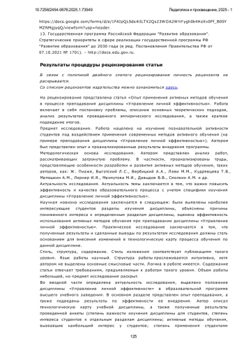 11. Фалунина Е.В. Активные методы обучения в системе высшего образования - современный взгляд на проблему обучения // Евразийский Союз Ученых. Психологические науки. - 2020. - № 4 (72). - С. 65-67.