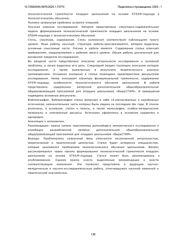 1. Константинова Н.В. STEAM-подход к технологическому обучению в младшей школе: возможности и ограничения // Современная наука, актуальные вопросы науки и образования. Серия: Гуманитарные науки. 2024. № 11-2. С. 91-95.