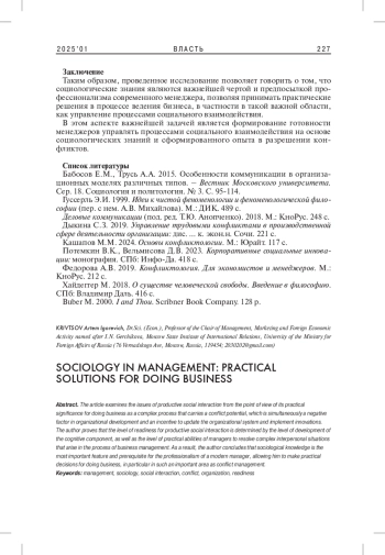 4. Дыкина С.З. 2019. Управление трудовыми конфликтами в производственной сфере деятельности организации: дис. … к. экон.н. Сочи. 221 с. EDN: MNCQCH