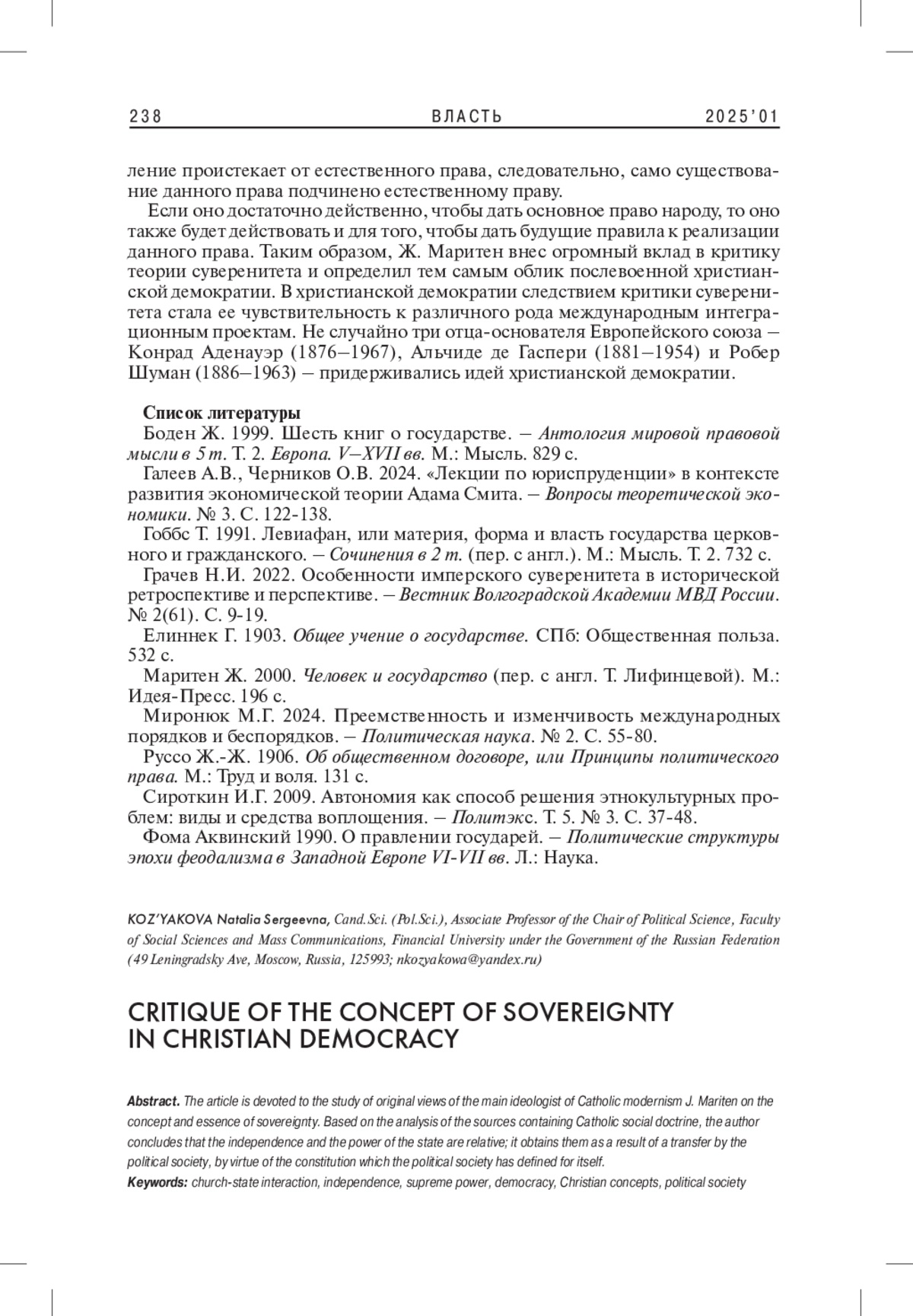 6. Маритен Ж. 2000. Человек и государство (пер. с англ. Т. Лифинцевой). М.: Идея-Пресс. 196 с.