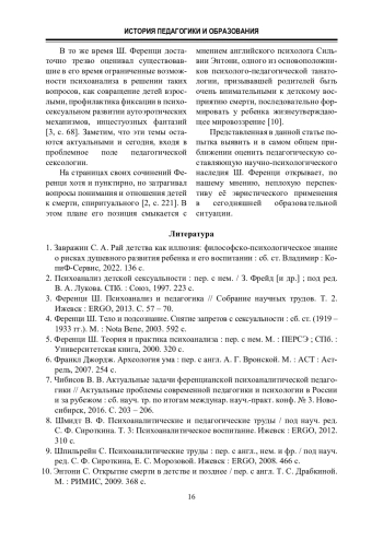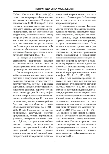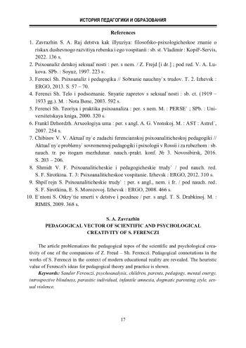 В статье проблематизируется педагогический топос научно-психологического творчества одного из сподвижников З. Фрейда – Ш. Ференци. Раскрываются педагогические коннотации в трудах Ш. Ференци в контексте современной образовательной реальности. Показана эвристическая ценность идей Ференци для педагогической теории и практики.